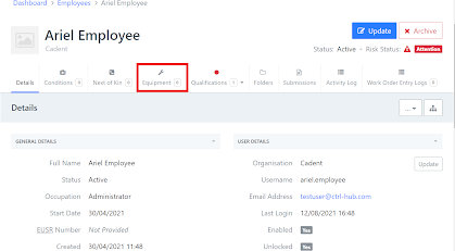 Once you have clicked into the employee you wish to add the equipment to, now click Equipment.