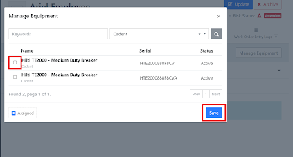 Select the employee from the list that you wish to assign the equipment to, or use the filter to search.