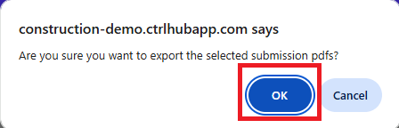You will receive a notification to confirm you wish to go ahead, select OK and you will receive an email with a zip file containing the PDFs.